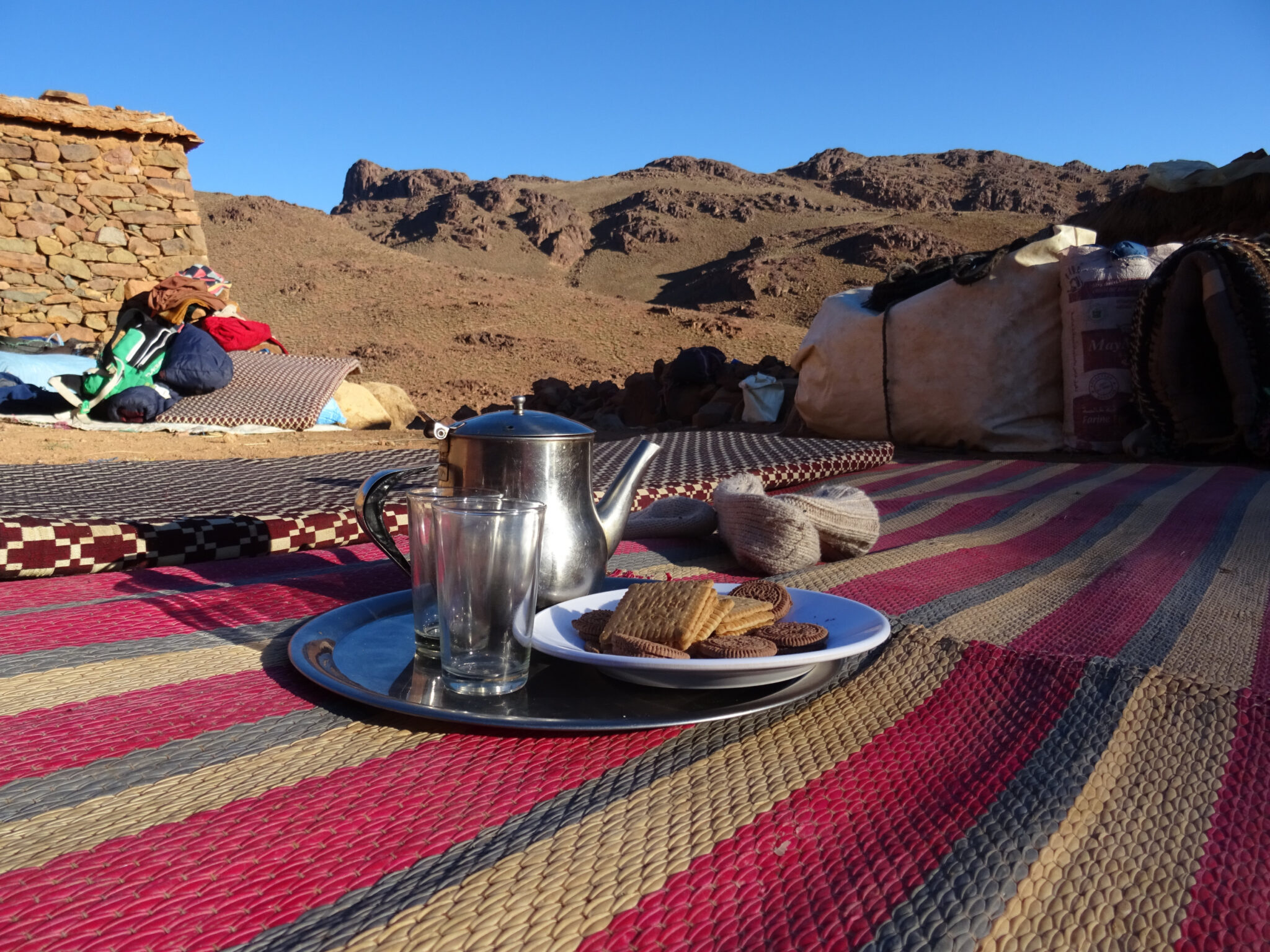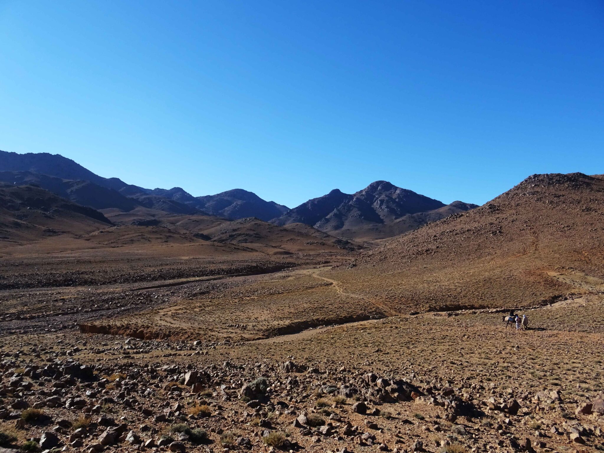 Entre l’Atlas et le Sahara vit encore une fière confédération berbère, dernière héritière d’un mode de vie semi-nomade plurimillénaire sur le point de disparaître du Maghreb : les Aït Atta. Leur berceau se trouve dans le Djebel Saghro, dans l’Anti-Atlas oriental. Ils sont unis par un ancêtre commun ayant vécu au XVIème siècle, Dadda Atta, le Grand-Père Atta, et se répartissent aujourd’hui en cinq tribus principales regroupant plus de 100 000 personnes. Leur réputation de bravoure les précède et leur attachement à la liberté et à leurs traditions en fit les derniers résistants face à l’occupation française en 1933, dont ils décimèrent les troupes lors la bataille de Bougafer dans le Saghro. Le Djebel Saghro, ou Adrar Saghro en berbère, signifie « la montagne de la sècheresse ». Comme son nom l’évoque, il s’agit d’un massif très désertique situé entre le pied sud de l’Atlas et les portes du Sahara. Très peu peuplé, il s’agit de l’une des étapes de la transhumance pour les troupeaux de chèvres et de moutons des Aït Atta, avant qu’ils ne grimpent dans le Haut-Atlas pour la belle saison quand la neige a fondu, où les bergers vivent sous tente. Ils y changent alors de pâture tous les 30 à 60 jours. L’opportunité de découvrir ne serait-ce qu’un éclat de ce mode de vie traditionnel, ça ne se refuse pas, surtout pour les archéologues que nous sommes. C’est donc à travers le massif du Djebel Saghro que nous a mené notre premier trek au Maroc.