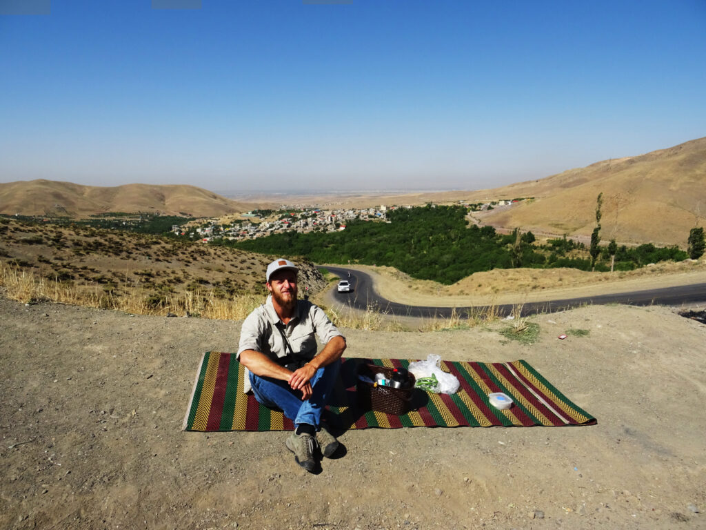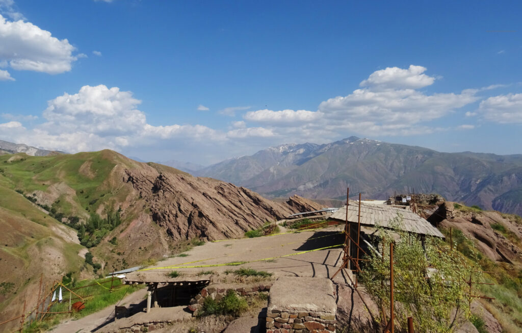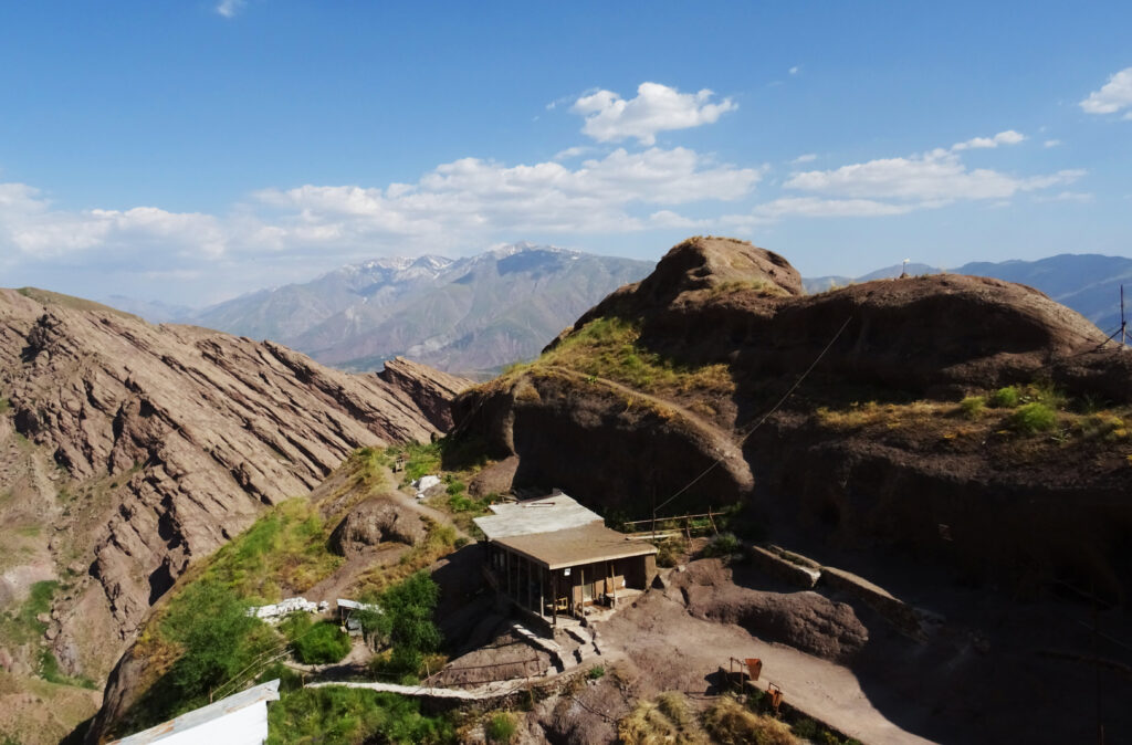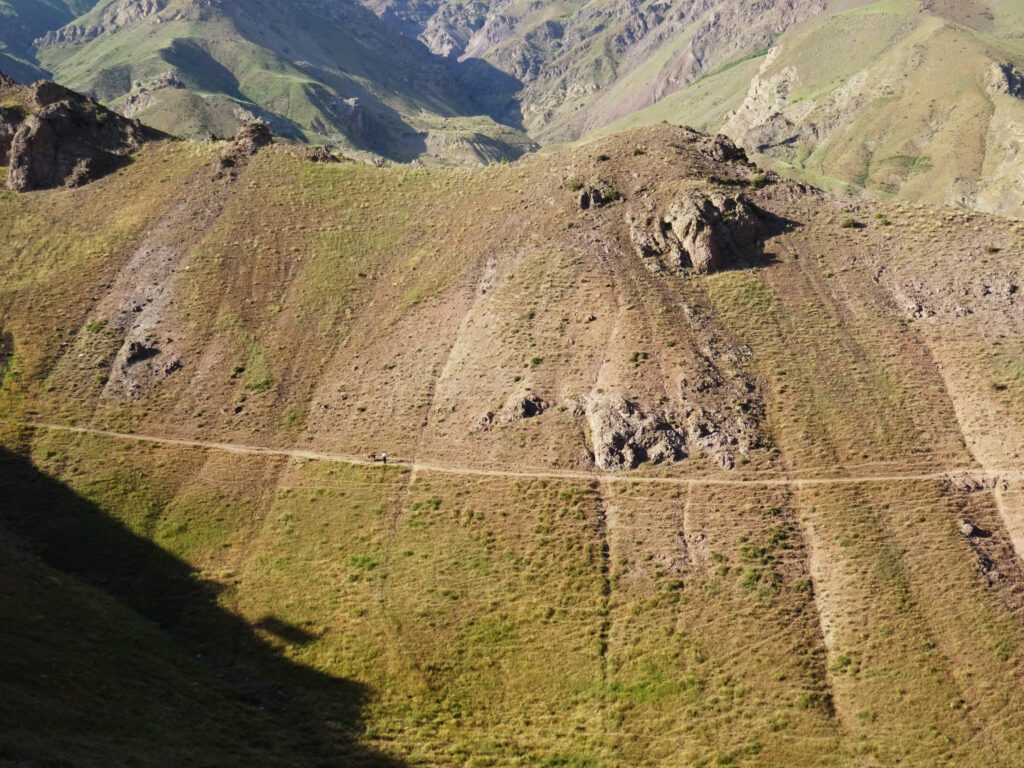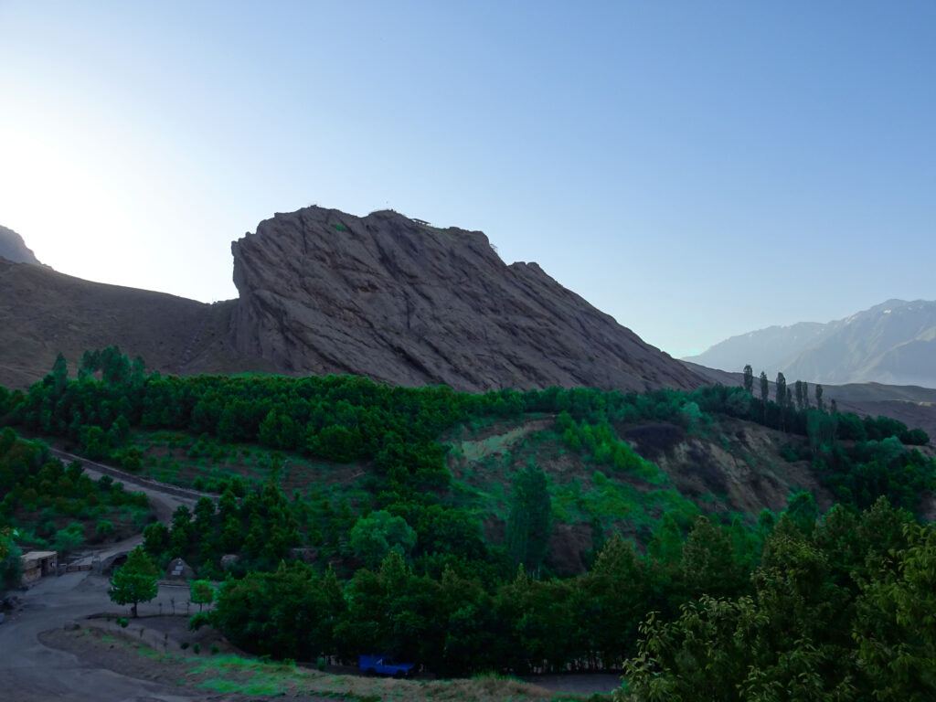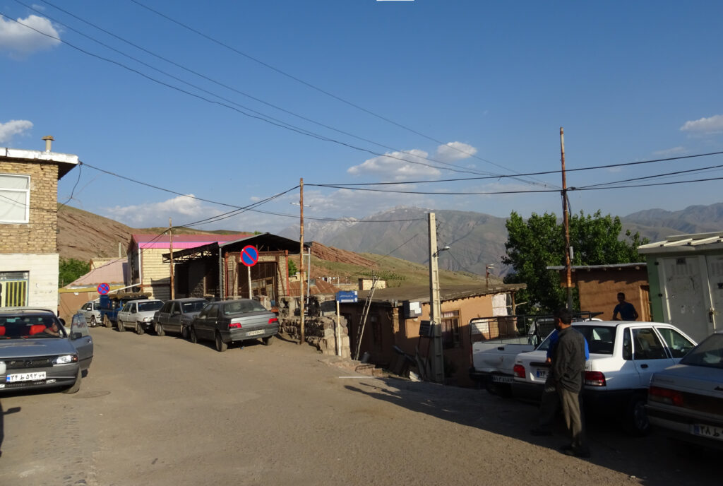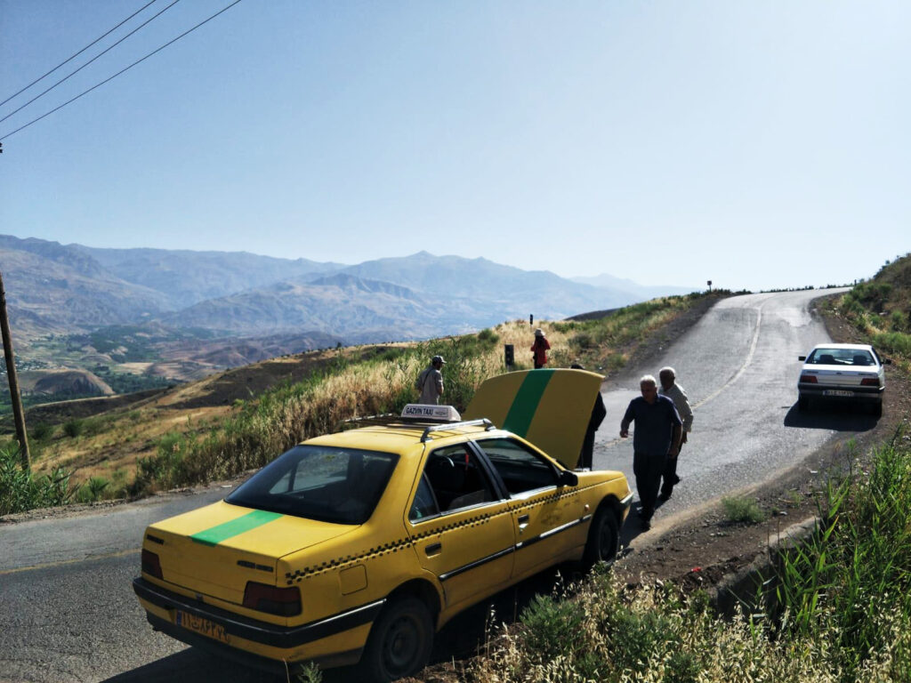 Pour monter à Gazor Khan, village lové à 2000 mètres d’altitude au pied du château menaçant, point de dromadaire ni de cheval. Il faut prendre un taxi de Qazvin, (capitale de l’empire safavide au XVIe siècle située environ 150 km au nord-ouest de Téhéran), dont nous finissons par fixer le prix après une heure d’âpres négociations. Le taxi s’envole à la vitesse de la lumière sur de petites routes de montagne tortueuses et défoncées. Pendant deux longues heures ce ne sont pas seulement les paysages qui défilent devant nos yeux, mais aussi nos vies. L’emprise du Vieux de la Montagne perdure, il faut une foi inébranlable en l’au-delà pour conduire de la sorte. En ce qui me concerne, j’aurais aussi bien pu arriver au paradis qu’à Alamut sans me rendre compte de rien.