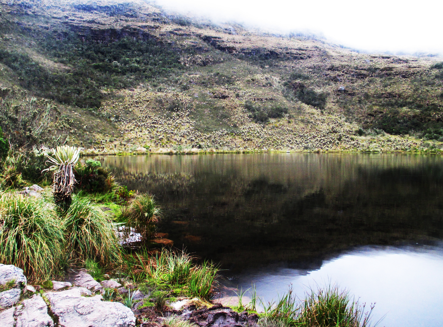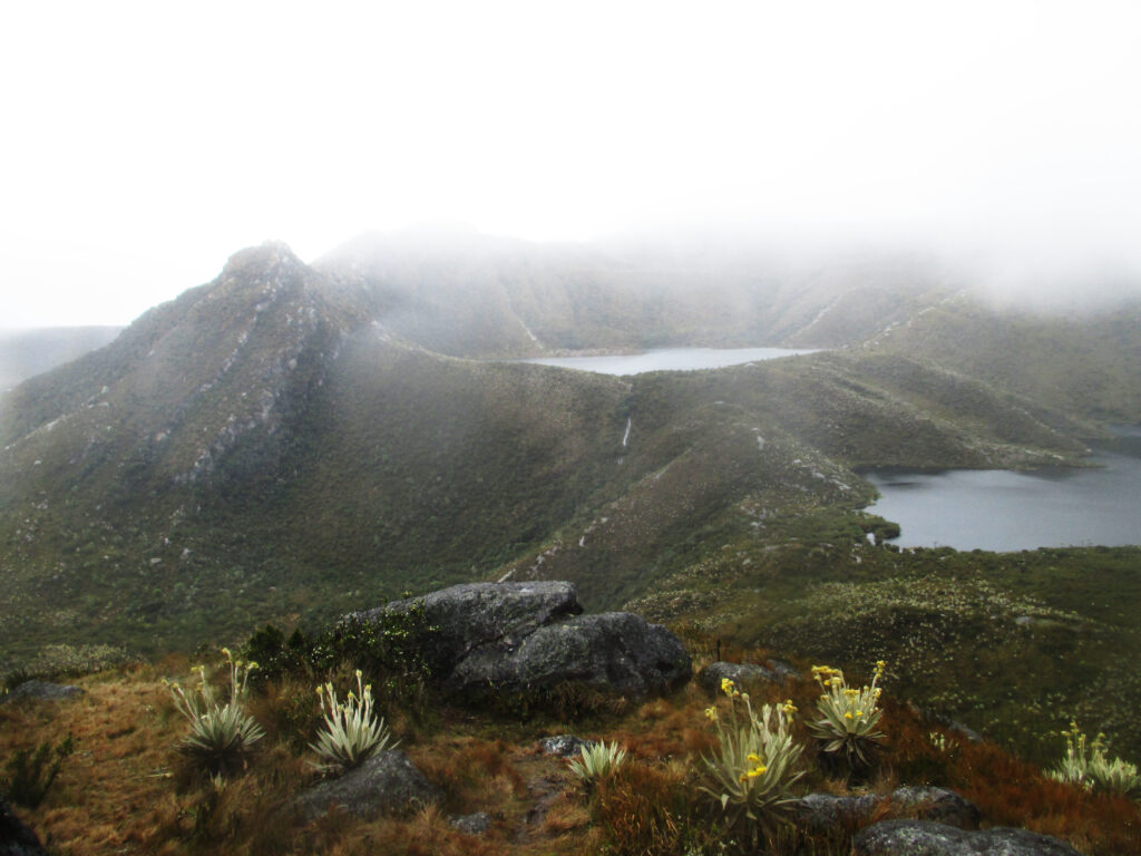 Notre pèlerinage prend fin à la lagune de Siecha, dans le parc naturel de Chingaza, où les divinités chibchas semblent avoir été décidées à nous faire rebrousser chemin, abattant sur nos têtes la tourmente. Nous parvenons malgré tout à la lagune sous une pluie battante, nous cramponnant à la végétation pour résister au vent. En langage muisca, « Siecha » signifie la « maison du Seigneur ». On a connu plus accueillant ! Ici avaient vraisemblablement lieu des rituels en lien avec l’agriculture et la vie quotidienne, il y a cinq siècles à peine.
