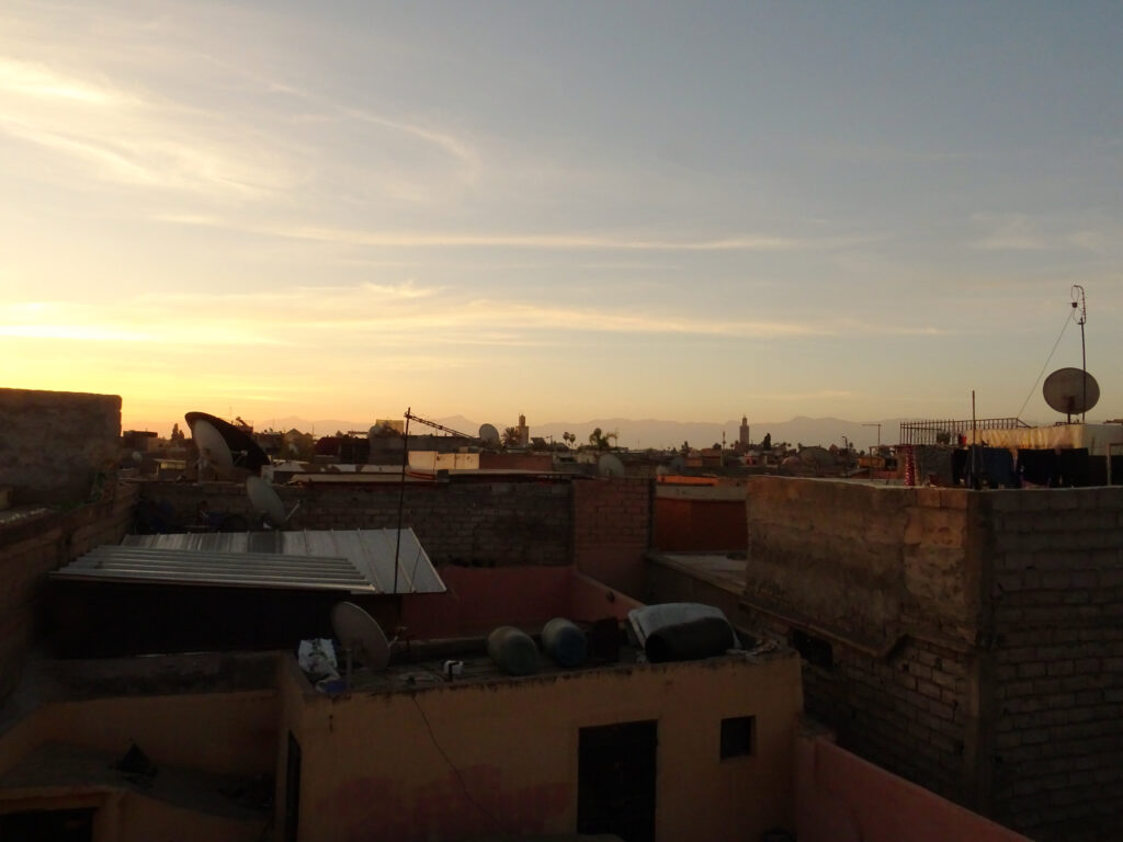 Le soleil se lève paresseusement sur la médine et l’Atlas. Le rooftop, quand on habite dans un labyrinthe chaotique et hyperactif comme les villes arabes, c’est un gage de qualité de vie. Ça permet de s’évader du tumulte du bazar et d’ouvrir l’horizon, de capter le gazouillis des oiseaux plutôt que les harangues des marchands de tapis et les klaxons des voitures. Premier constat : la globalisation a encore sévi, l’heure n’est plus aux pendules mais aux relations internationales. Il est donc la même heure qu’en Suisse cette année, ce qui n’était pas le cas l’année précédente. Hélas il n’y a pas que l’heure qui voyage au gré de l’économie, le coronavirus fait aussi son entrée au Maghreb. Difficile de ne pas penser à La Peste de Camus. Mais ici le virus n’a qu’à bien se tenir, nous assure-t-on : le climat est bon et les Berbères sont solides, il n’a pas la moindre chance. Nous partons donc la fleur au fusil pour effectuer cette deuxième partie de notre itinéraire dans les pas des Aït Atta.