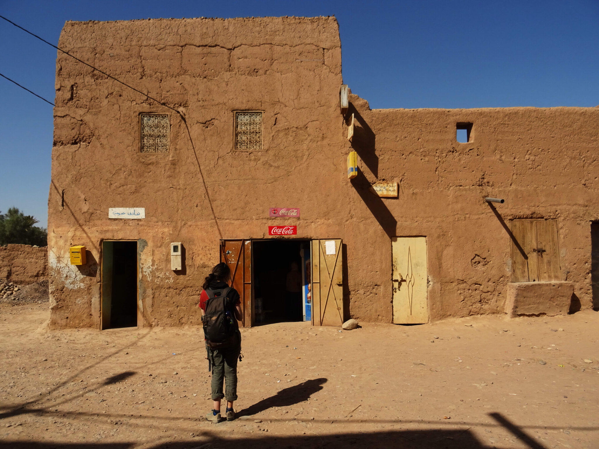 Le trek se termine dans le village en pisé de Bounou. Juste avant de traverser la rivière asséchée, un panneau d’interdiction de circuler indique que nous sortons d’une zone militaire, ce que nous ignorions bien sûr. À Bounou, les guesthouses et les campings foisonnent. Beaucoup ont été ouverts par des femmes européennes d’un certain âge venues marier de jeunes chameliers séduisants et fauchés. En rentrant à Marrakech, on se fait arrêter par la gendarmerie royale : excès de vitesse de 1 km/h. Et c’est ainsi que sont renflouées les caisses du roi : on a vite fait de mordre une ligne de démarcation complètement effacée sur la route. « Je vous pardonne mon frère, mais le radar lui ne pardonne pas », dit le policier en arabe avec un sourire faussement navré à notre pauvre Mohamed.
